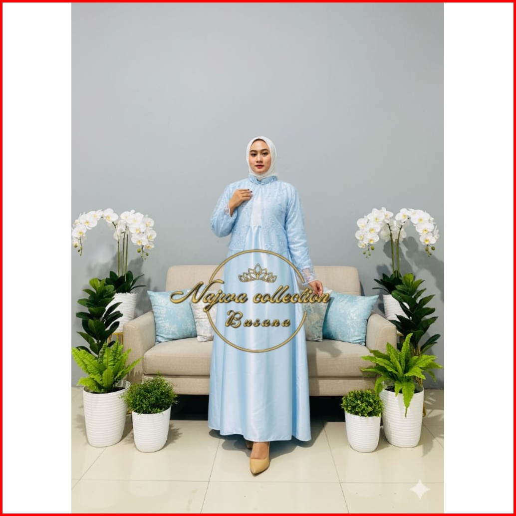 Sakura Dress Gamis Limited Edition Terbaru Bahan Silk Premium Mix Brukat Aplikasi Payet Mutiara Mewah Trendy Pesta Konda