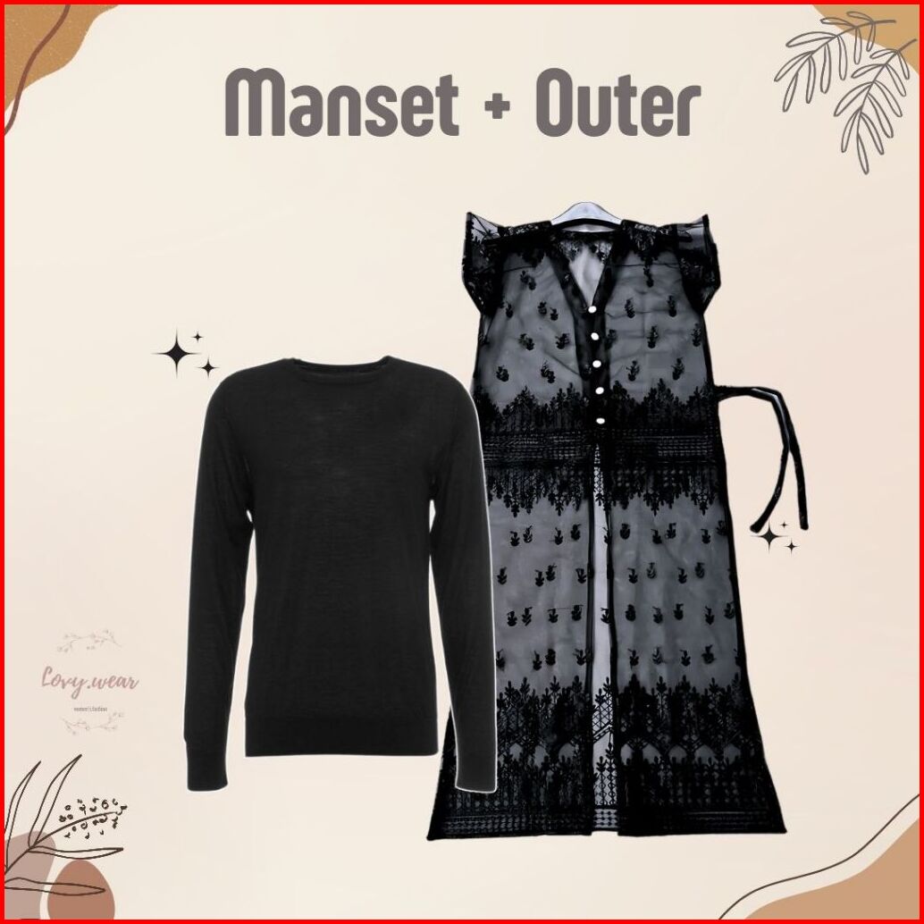 One Set Wanita Kekinian Outer Brokat Celana Knit Manset Lengan Panjang Fashion Muslim - Lw01
