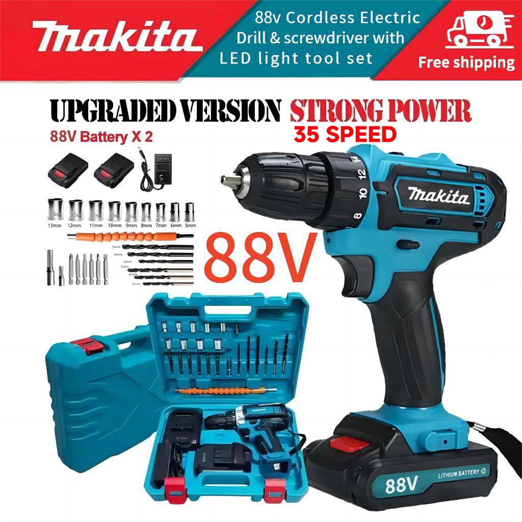MAKlTA 86vf Mesin bor 2baterai cas 10mm bor listrik murah bor tangan baterai besi tembok Beton kayu Cordless Drill bor cas