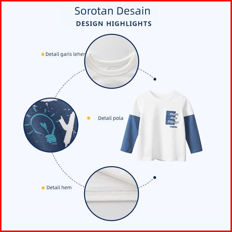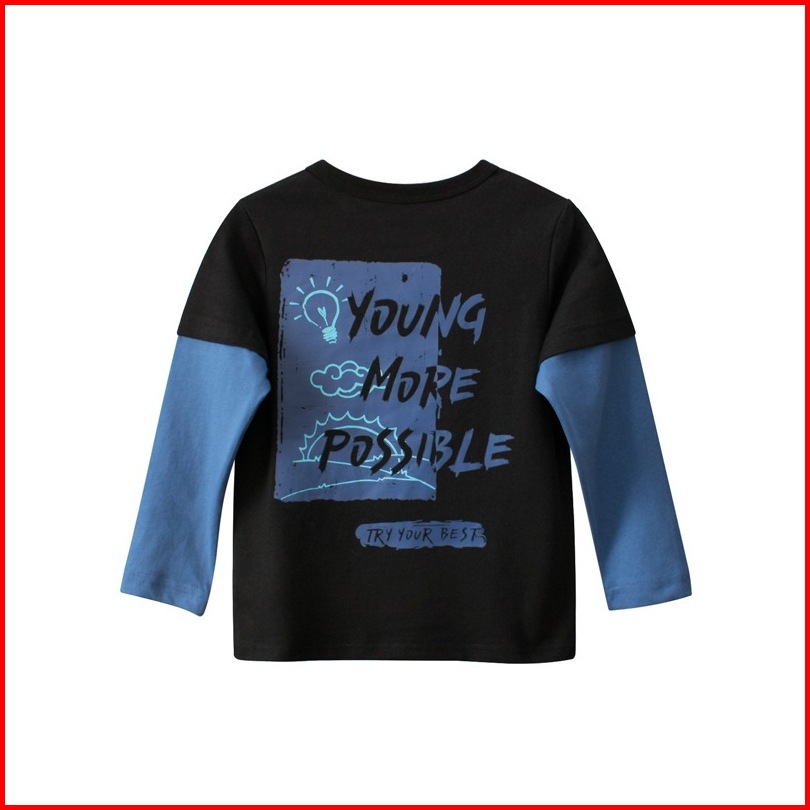 99k-kids Boys T-shirt Two Tone Color Long Sleeve Round Neck 3364 Size 90 - 140