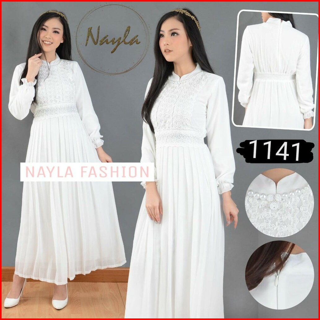 Nayla - Thalia Dress Gamis Putih Premium Gaun Pesta Mewah Elegan Baju Lebaran Wanita Terbaru 1141