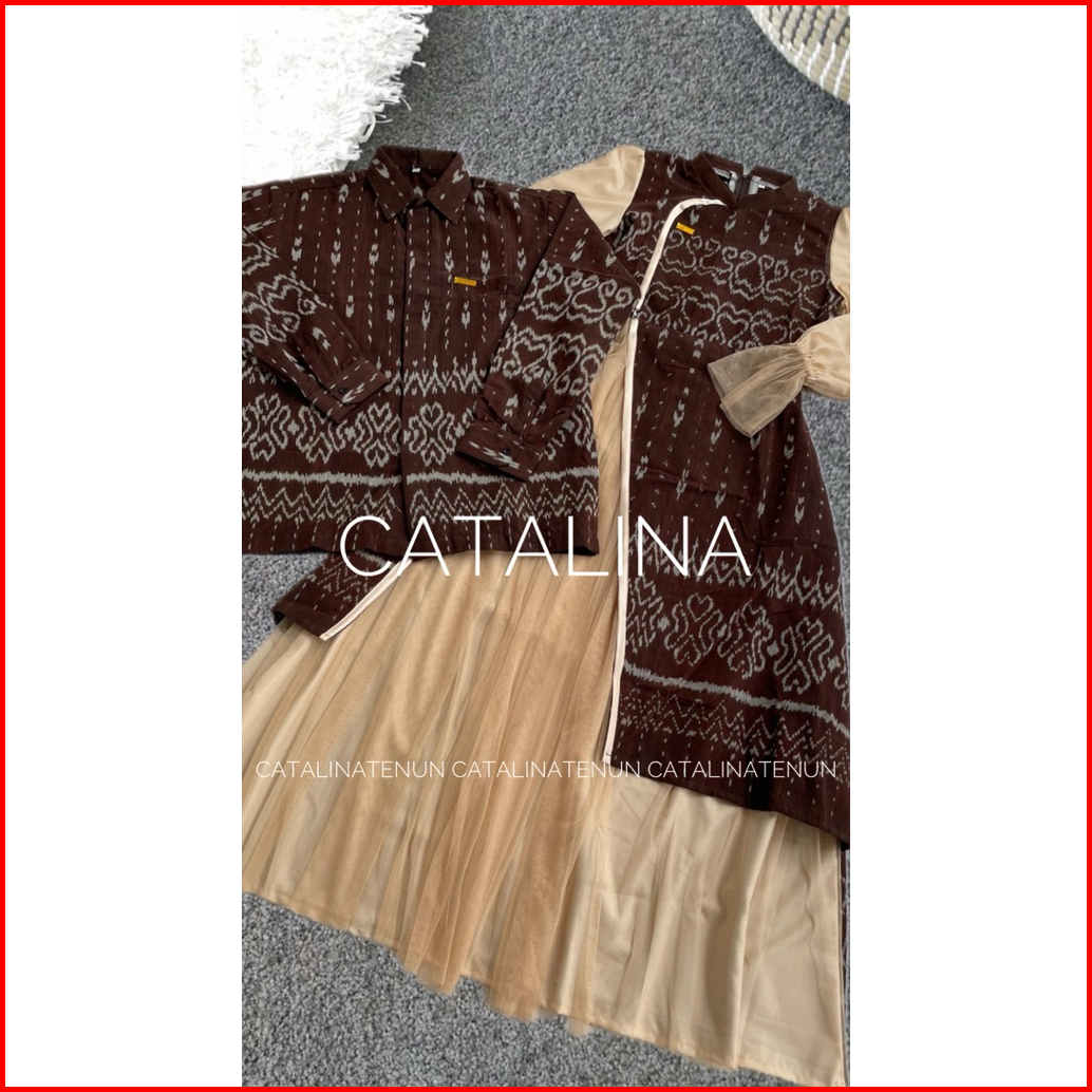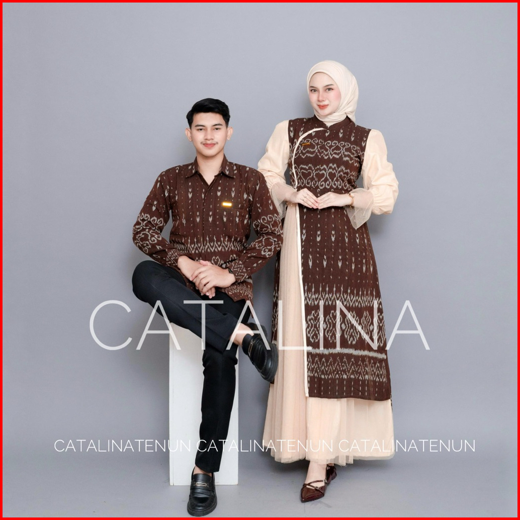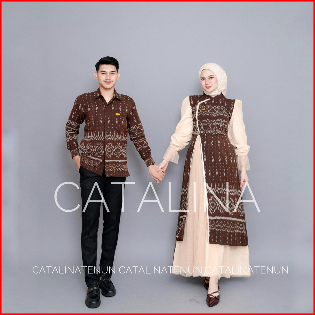 Baju Tenun Couple Hana Dress Busui Mahogany X Kemeja Pria Dress Kondangan