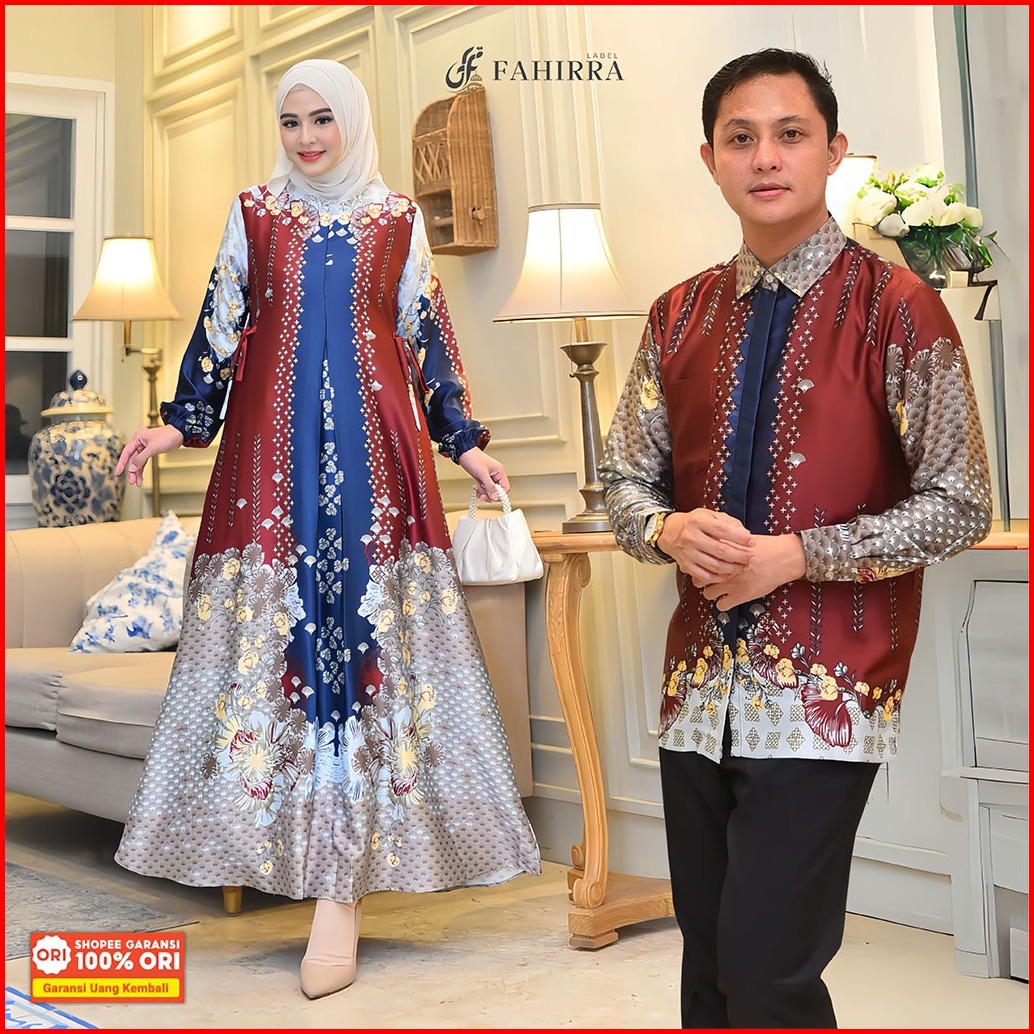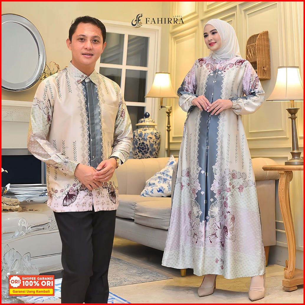 Couple Medinna Bahan Silk Premium Motif Bunga Elegan Busui Friendly Set Couple Kemeja Terbaru Murah
