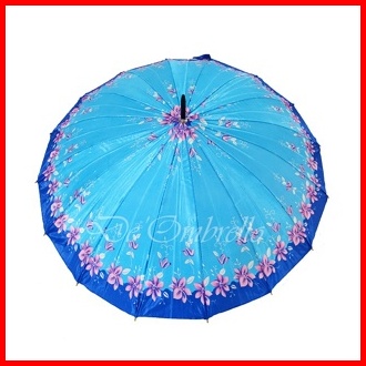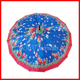 062 Payung 16 Jari Bahan Saten Motif Kembang Campur Handle Premium Quality Umbrella