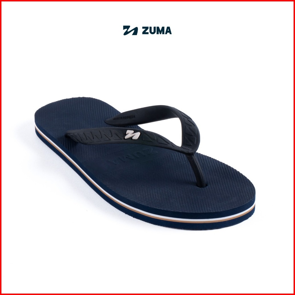 Zuma Men Stripe 15 Black Navy White Sandal Jepit Pria Karet Polos Hitam Biru Dongker Putih