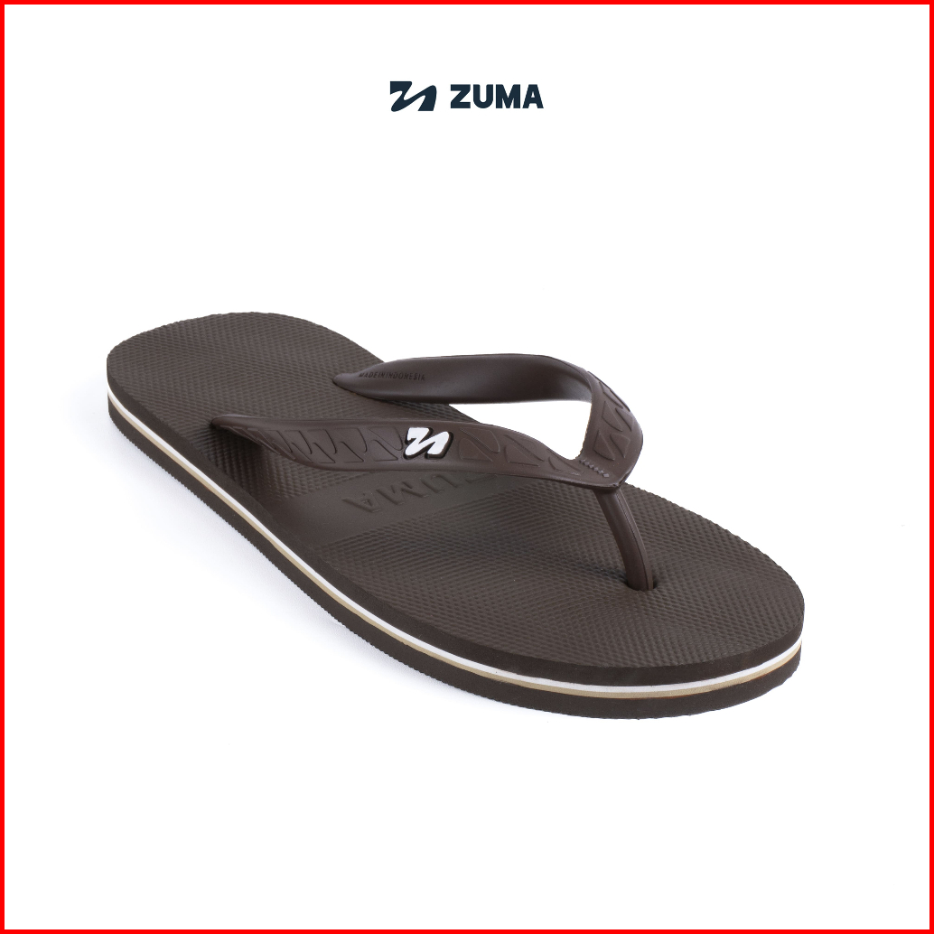 Zuma Men Stripe 16 Cocoa White Tan Sandal Jepit Pria Karet Polos Cokelat