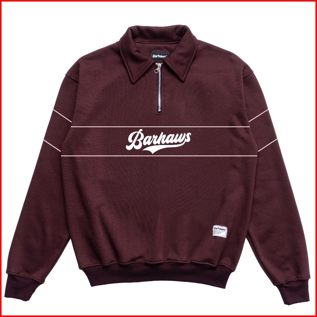 Barhaws - Sweater Half Zipper Rugby Kombinasi Maroon