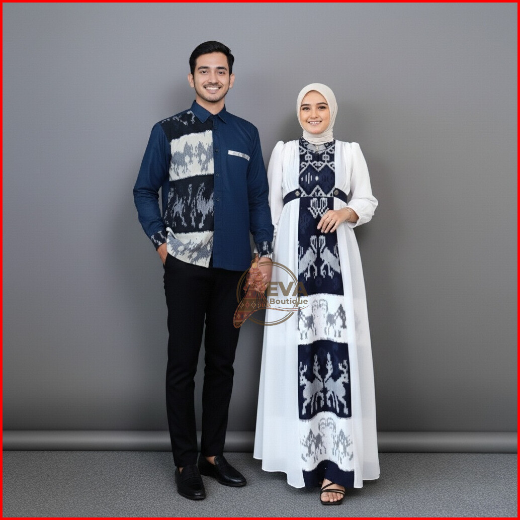 Evaboutique- Safitri Sumba Navy Baju Tenun Set Family Kondangan Sarimbit Lebaran Seragam Bridesmaid