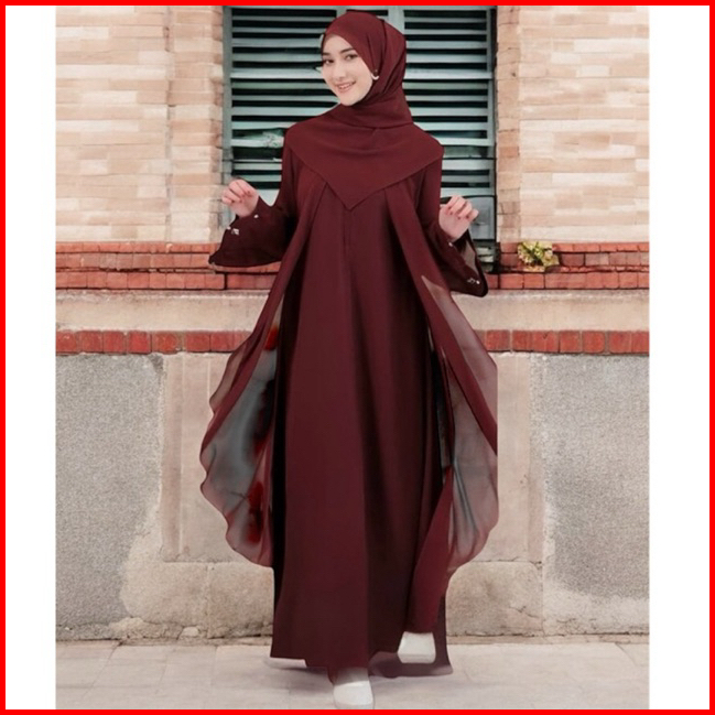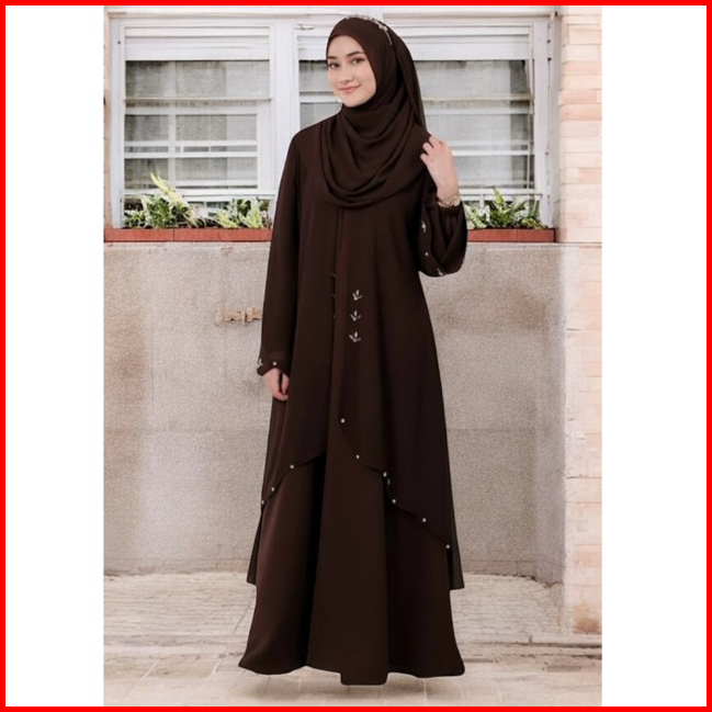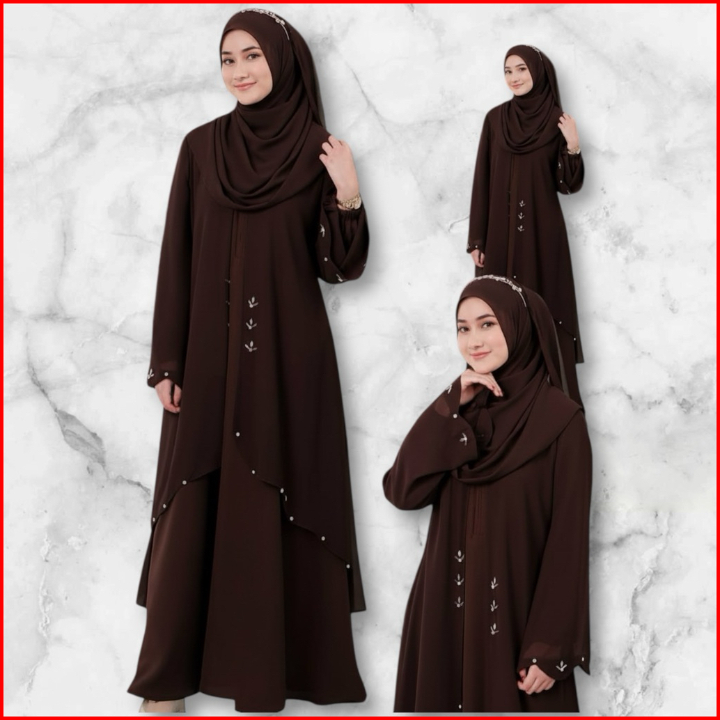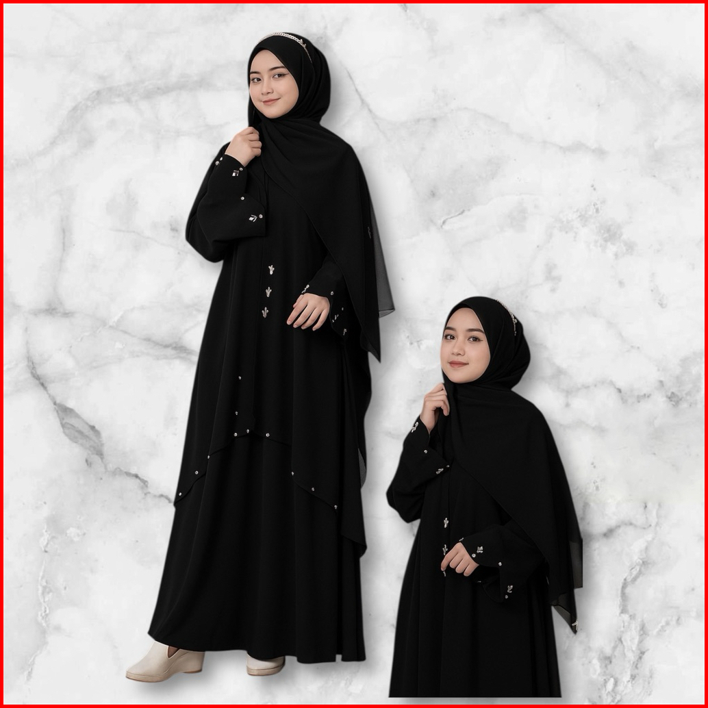 Gamis Abaya Layer Elegant Mote Payet Pesta Premium Style Dubai Abaya Hitam Polos Mewah Murah Lebaran