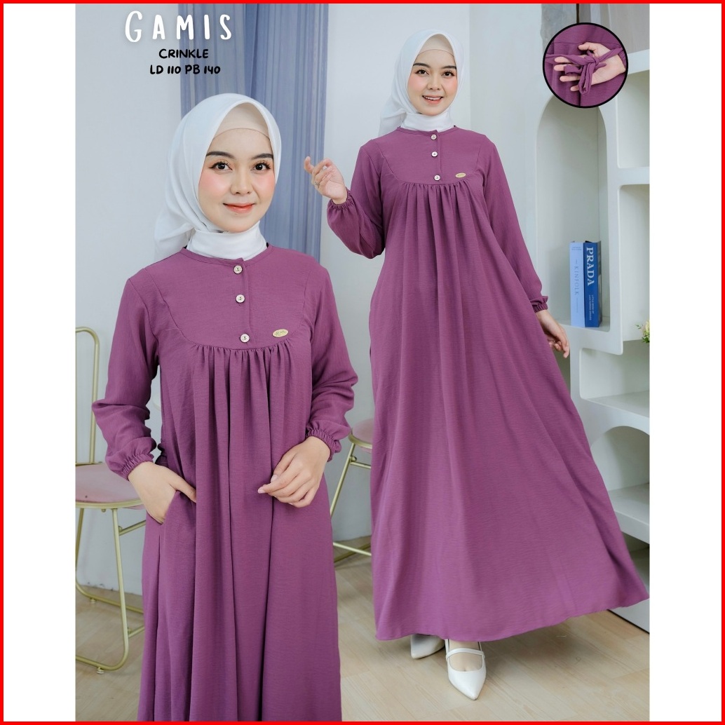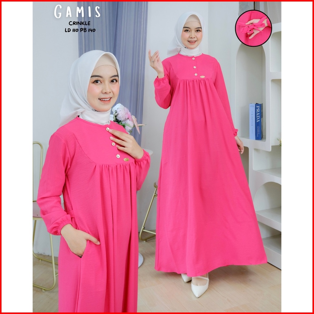 Baju Gamis Wanita Terbaru Bahan Crinkle Nyaman Adem Mewah Dan Elegan Gamis Lebaran 2026