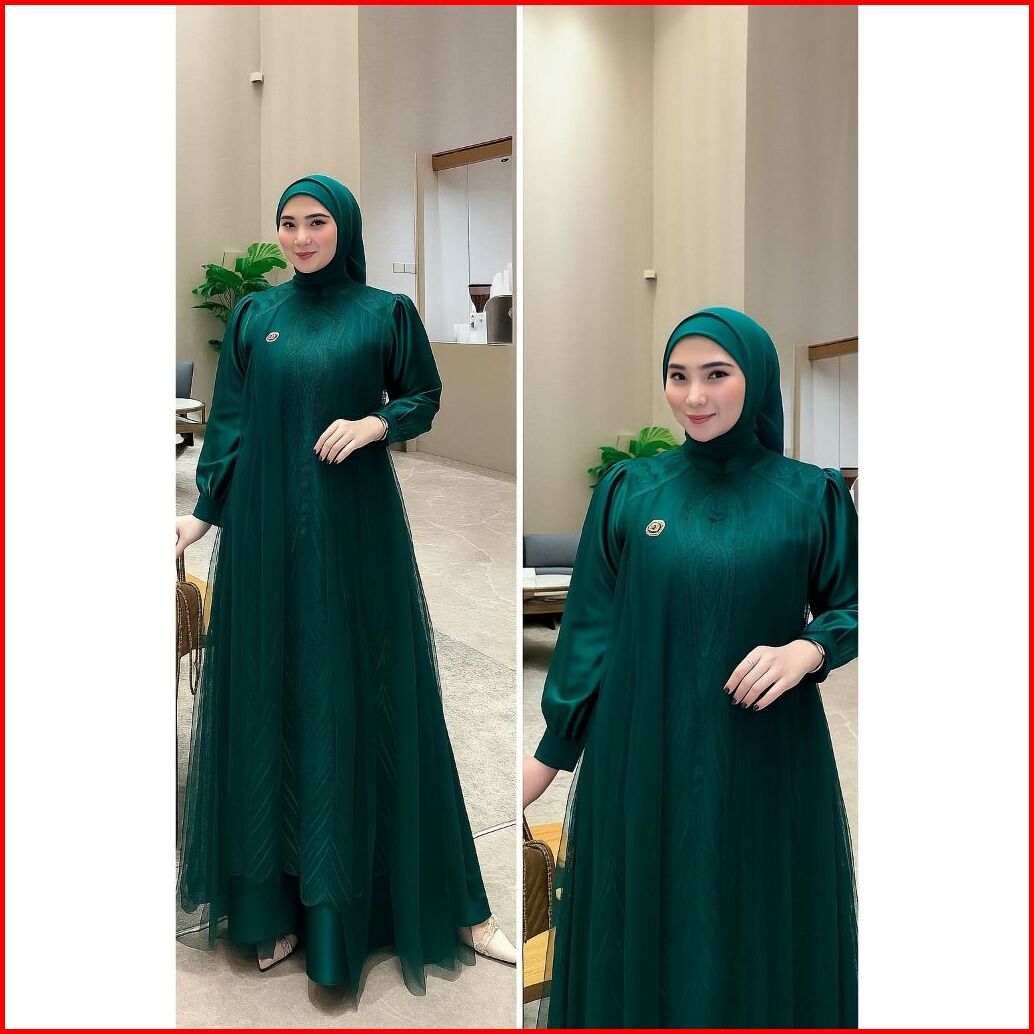 Dress Leya Gamis Brukat Mix Tile Mewah Dress Kondangan Pesta Elegant Dress Muslim Dewasa