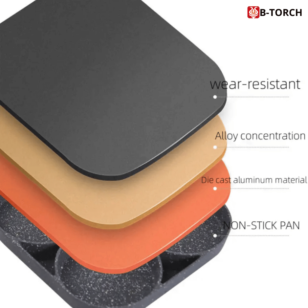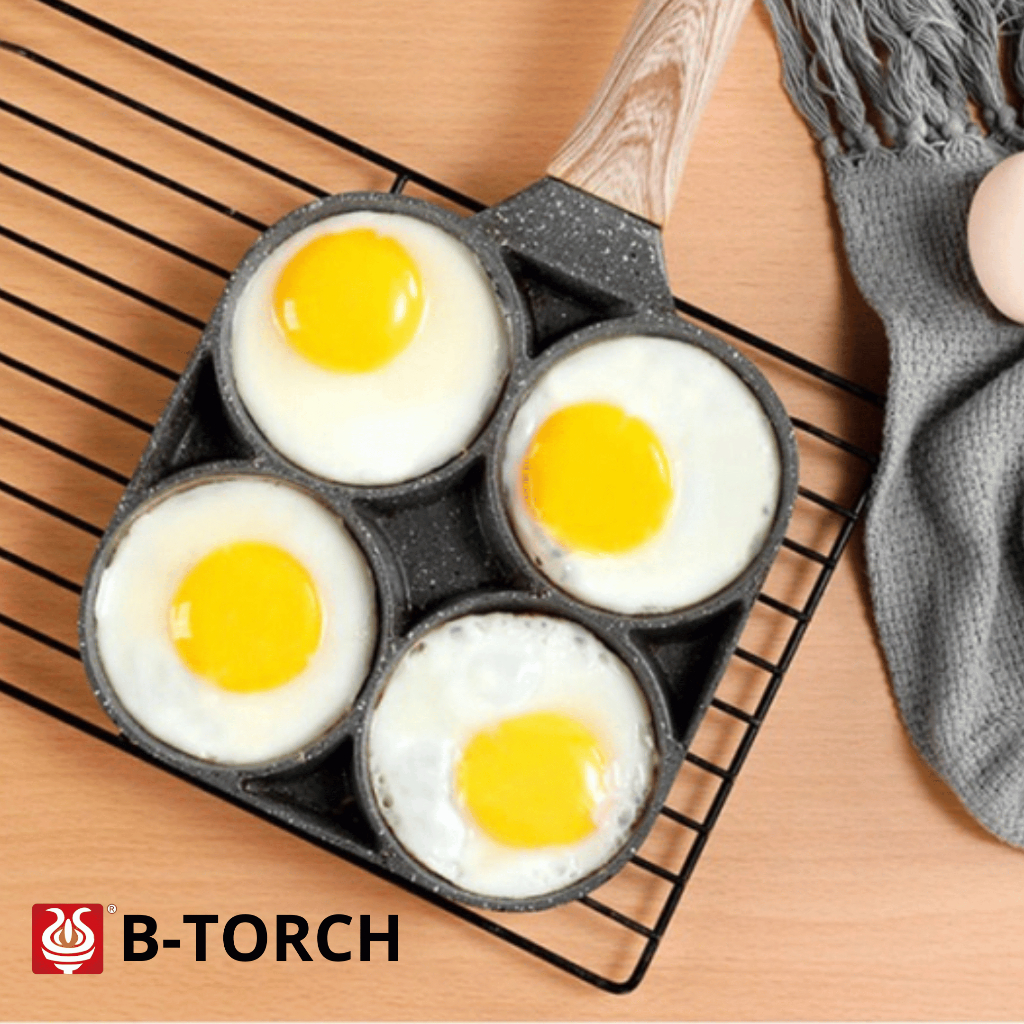 B-TORCH Cetakan Telur Kue Pancake 4 Lubang Wajan Teflon Telur Anti Lengket