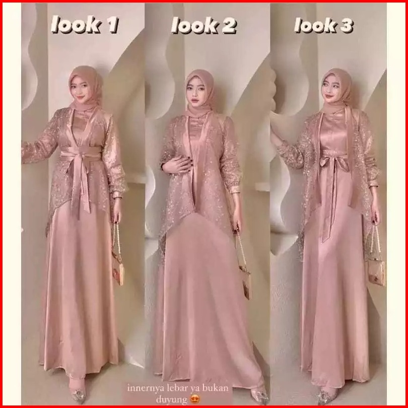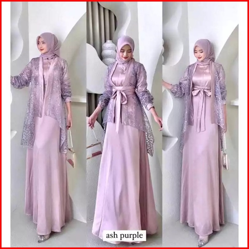 Lavanya-veloxa Gamis Satin Brokat Dress Lebaran Busui Mahogany Ready
