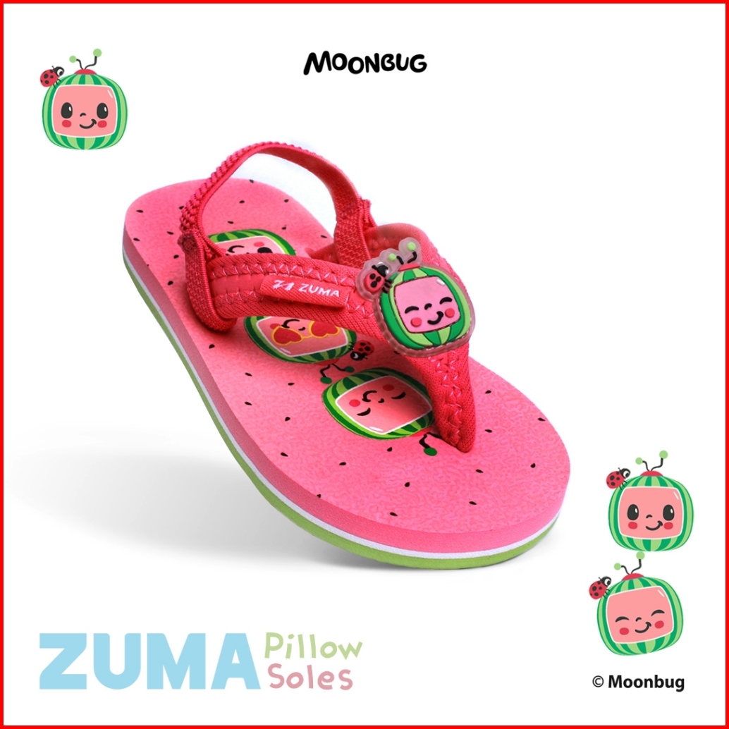 Zuma Baby Cocomelon 2 Red Green Sandal Jepit Bayi Karet Tali Belakang Merah Hijau