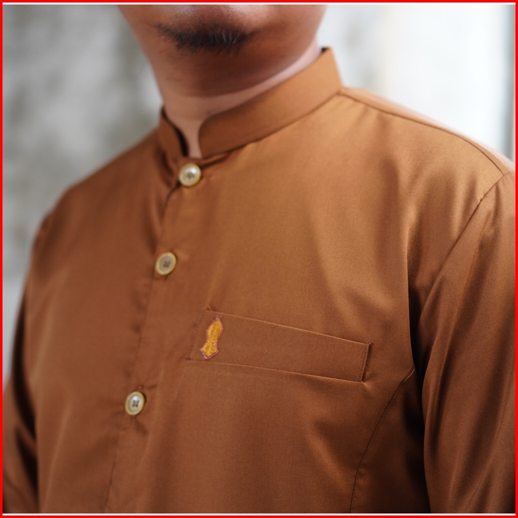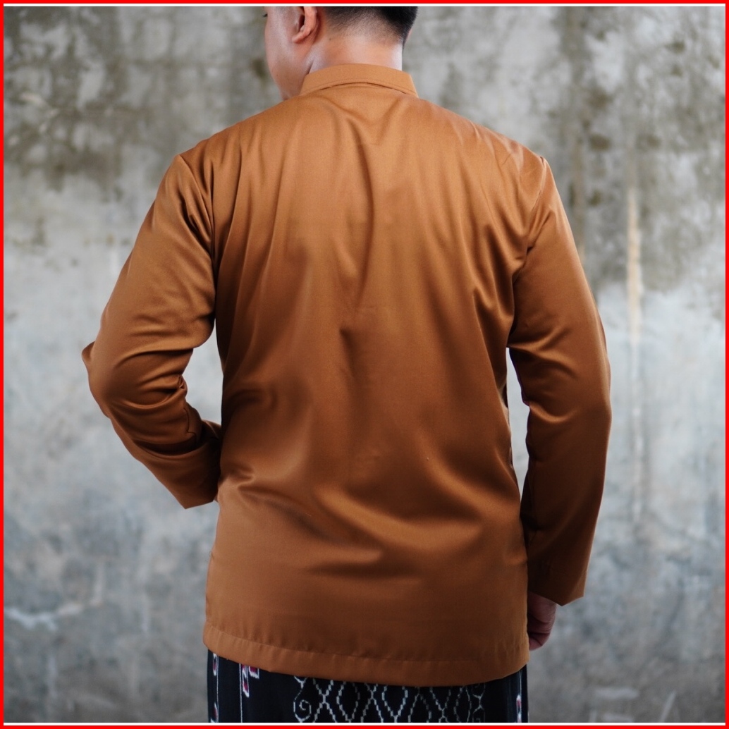Alkafi Baju Koko Pria Semi Jas Terompah Saku Samping Lengan Panjang Bahan Toyobo