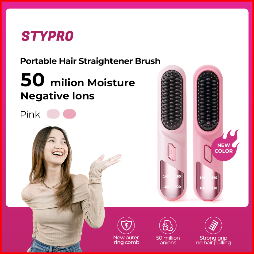 Stypro Hair Straightener Brush - Sisir Catokan Pelurus Rambut Multifungsi Dengan 4 Tingkat Pengaturan Dan Kontrol Suhu S