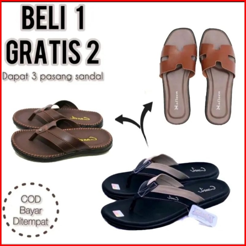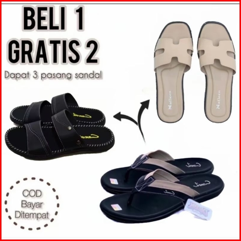 Promo Diskon Paket Keluarga - Beli 1 Gratis 2 Sandal Pria Sandal Wanita Size Wanita 36-40 Wajib Tulis Pesan Opsional San