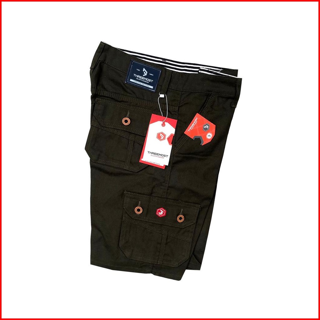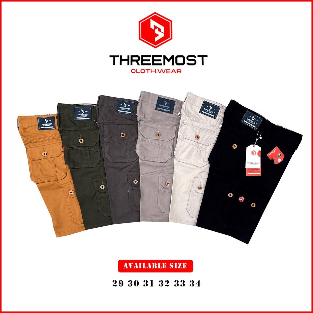 Threemost - Celana Pendek Cargo Pria Cargo Kimpul Kanvas Twill Short Cargo Pants Distro Casual
