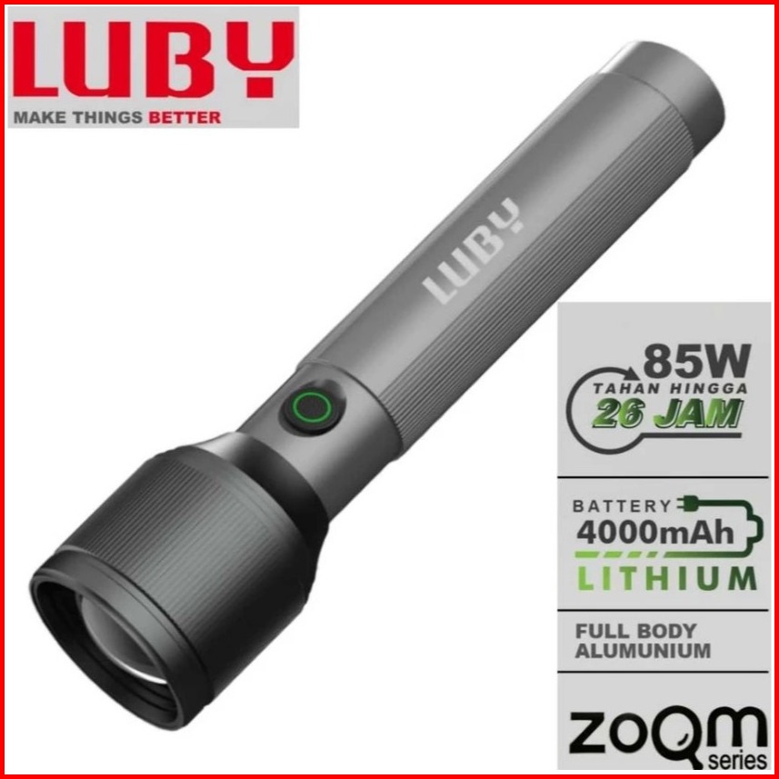 Senter Led Luby L-al8006 85watt 4000mah Tahan Hingga 26jam - Zoom Jarak Jauh - Body Alumunium - Charger Usb Type C
