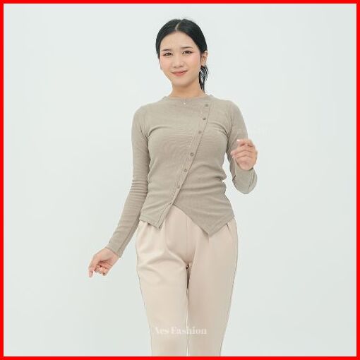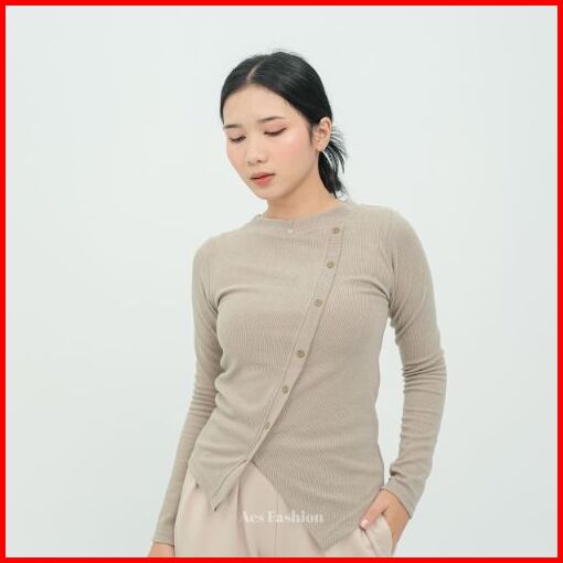 Aes Fashion - Davina Top Atasan Knit Wanita Korean Top Lengan Panjang Long Sleeve Rib Knit Kekinian
