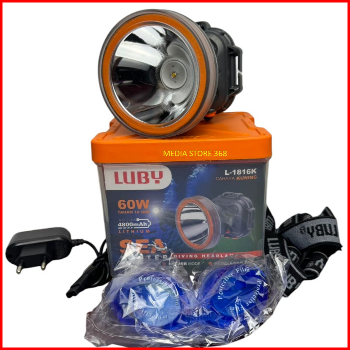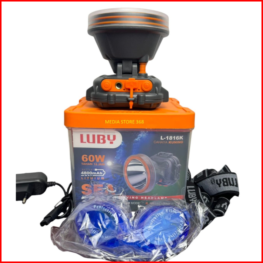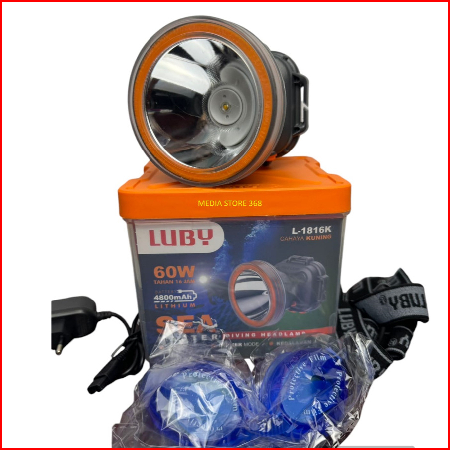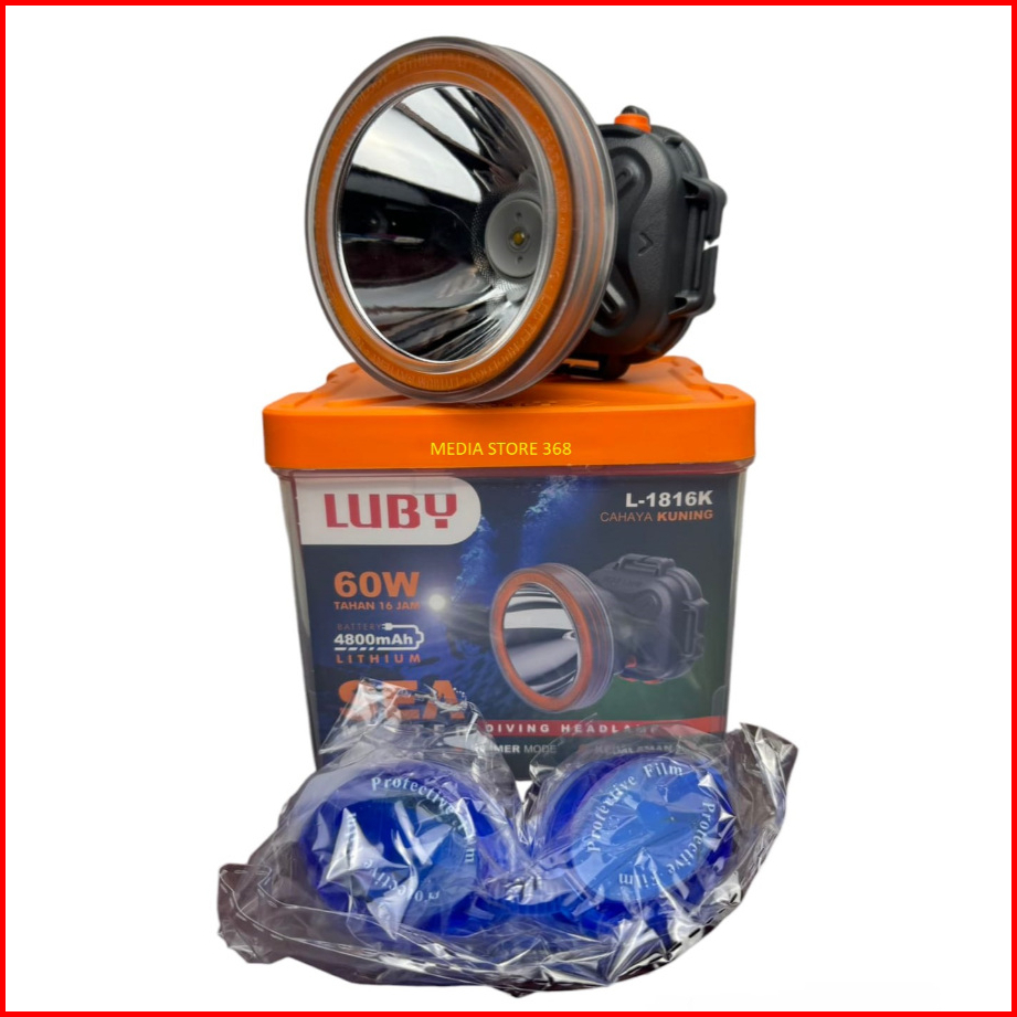 Senter Kepala Selam Led 60w Luby L-1816l - Super Terang - Tahan Lama - Free Kaca Mata Renang