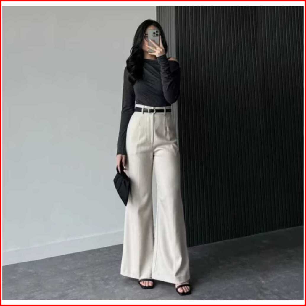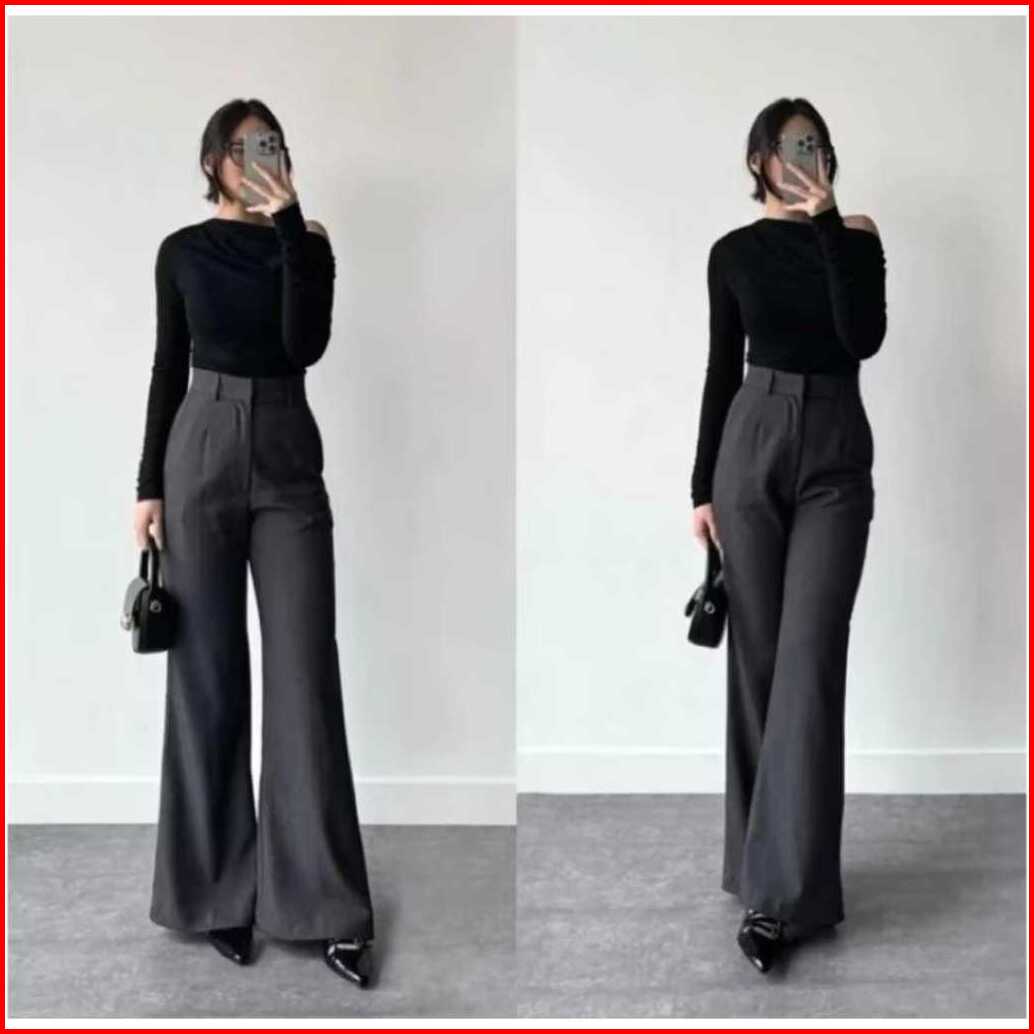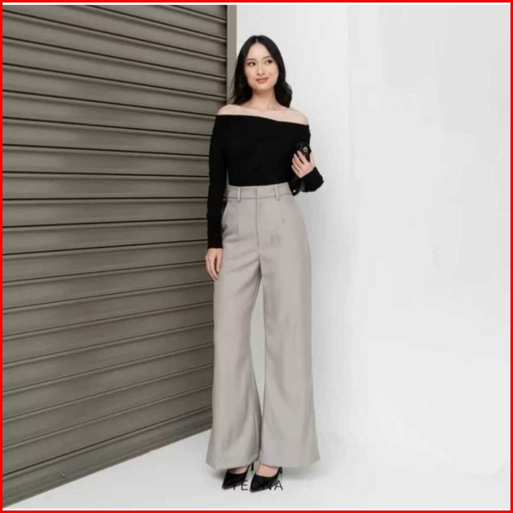 Etta Pants - Celana Anti Kusut - Celana Panjang Korean Style - Celana Cutbray Highwaist Wanita