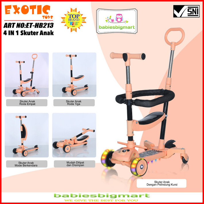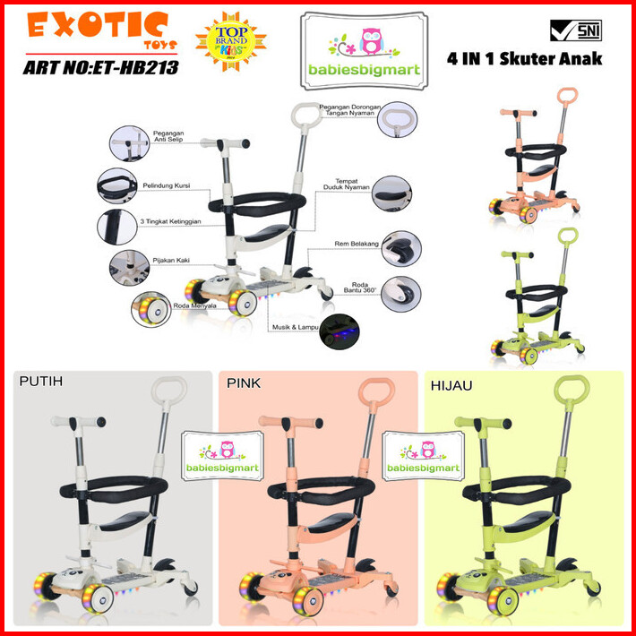 Mainan Anak Scooter Duduk Berdisi Exotic Hb 213 Stoller 4in1 Bisa Lipat Ada Lampu Musik