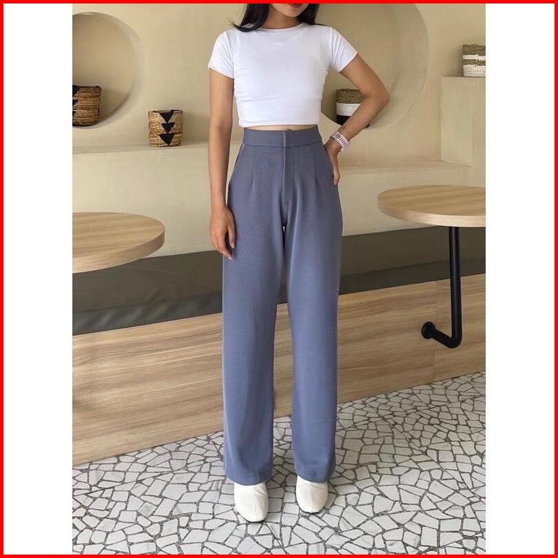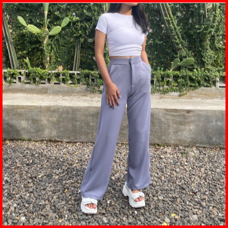 Cozie Pants Jumbo Xxl Bb 65 - 85 Rib Knit Premium Highwaist Cullote Loose Pants Wanita Anti Kusut