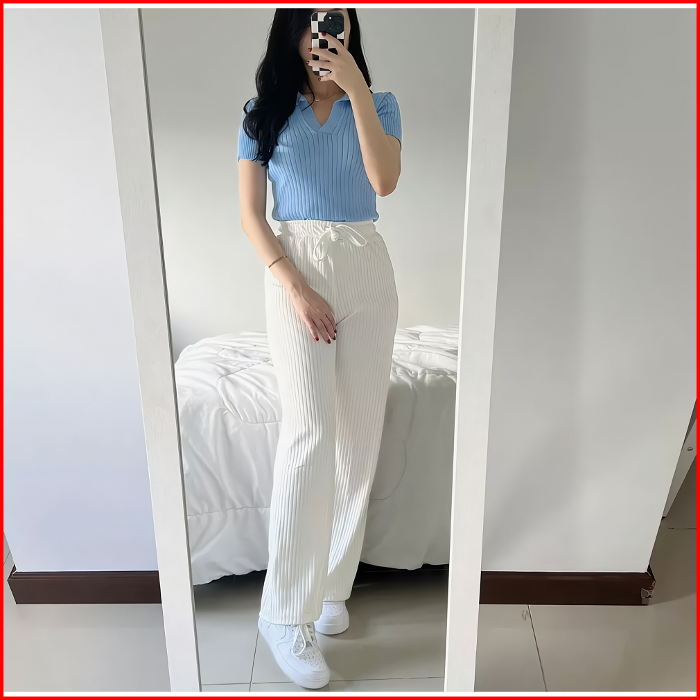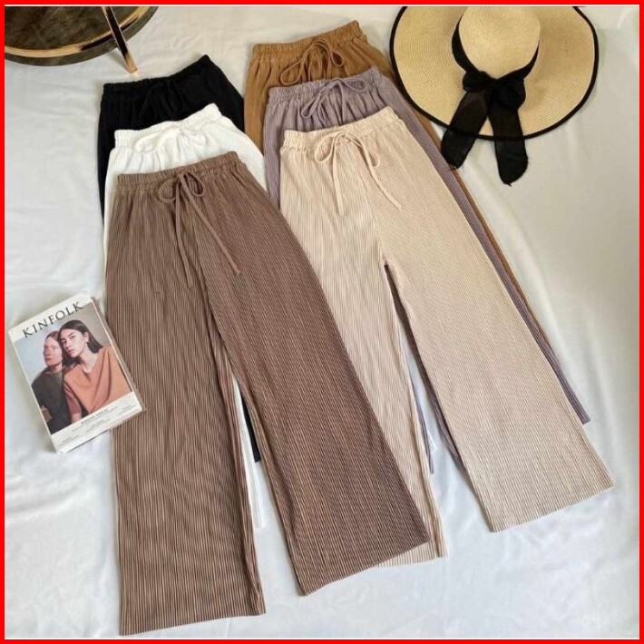 Celana Kulot Wanita Knit Hornet Premium Panjang Loose Cullote Pants Highwaist