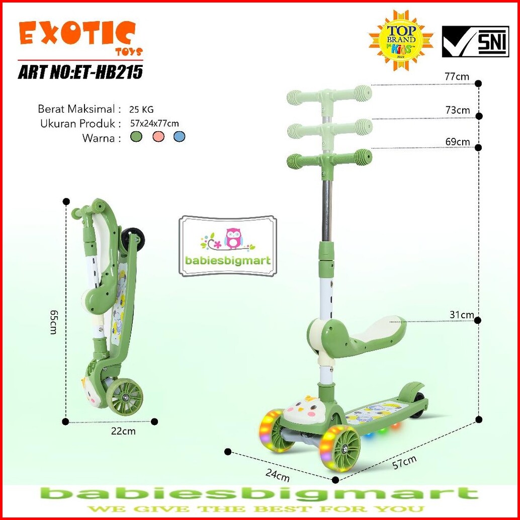 Scooter Mainan Anak Exotic Et Hb 215 Bisa Duduk Berdiri Musik Lampu Scooter Lipat Skuter Sekuter