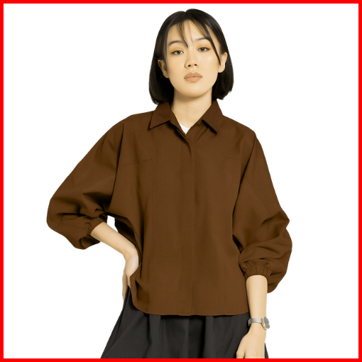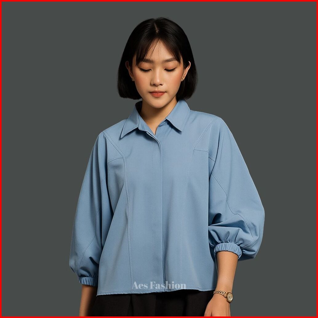 Aes Fashion Adelin Kemeja Batwing Wanita Lengan Balon Kemeja Katun Premium Basic Korean Girls