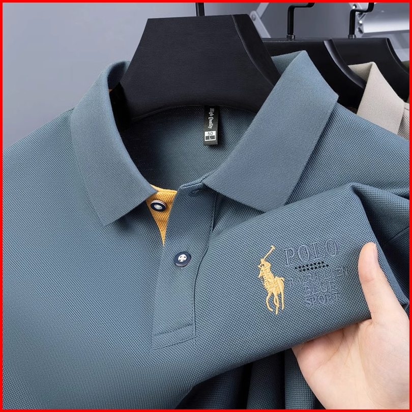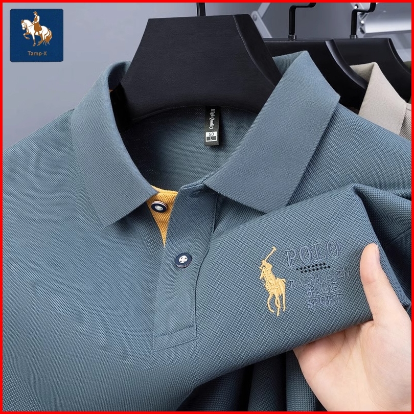 Tamp-x Slimfit Polo Shirt Pria Distro Kerah Casual Premium Korean Style Bordir Polo Biru