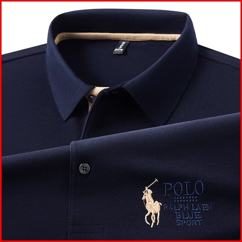 Polo Shirt Pria Original Kaos Distro Kerah Casual Lengan Pendek Bordir Korean Style Biru Navy Slimfit
