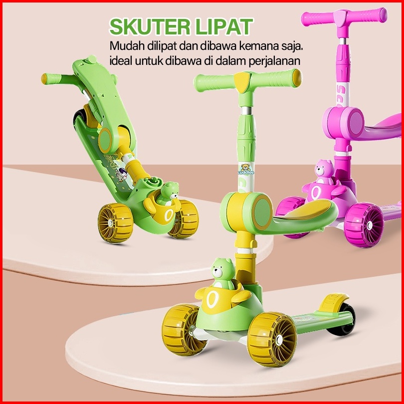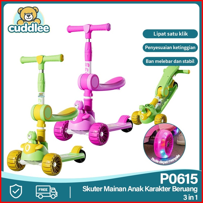 Cuddlee Skuter Mainan Anak Karakter Beruang 3 In 1 P0615 - Skuter Lipat Mainan Anak Karakter Beruang 3 In 1