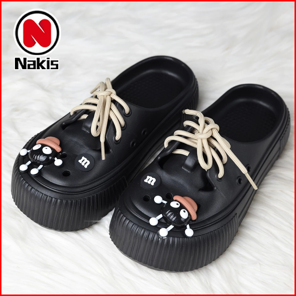 Nakis Sepatu Sandal Tali Terbaru Jibbitz M M Sandal Kekinian Korean Style Karet Eva Size 30-41sandal Pria Wanita Selop S