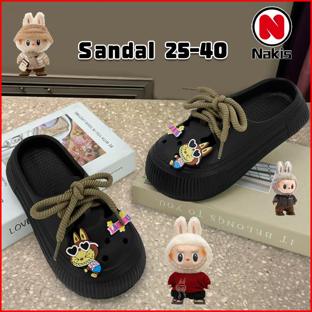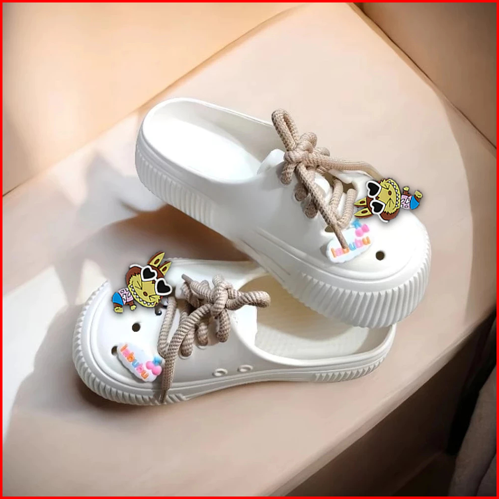 Sandal Sepatu Karet Tali Wanita Baim Selop Jibbitz 3d Labubu Anti Slip Sandal Sepatu Wanita Jibitz Tinggi 5 Cm Bahan Kar