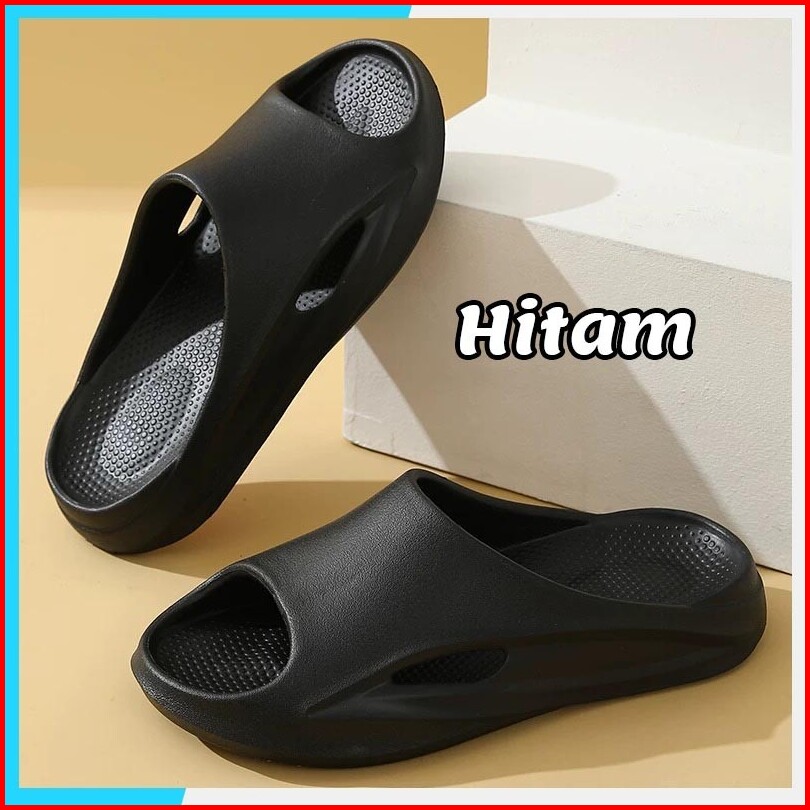 Sandal Slide Pria Hitam Keren Indoor Outdoor Empuk Sendal Laki Laki Slop Kekinian Karet Jelly Nyaman Cowok Anti Slip