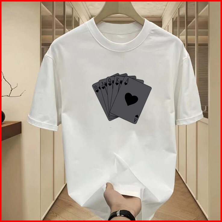 Kaos Lengan Pendek Pasang Amerika Pria 2024 Musim Panas Baru Pencetakan Kreatif Baru Model Kaos Kartu Remi Setengah Leng