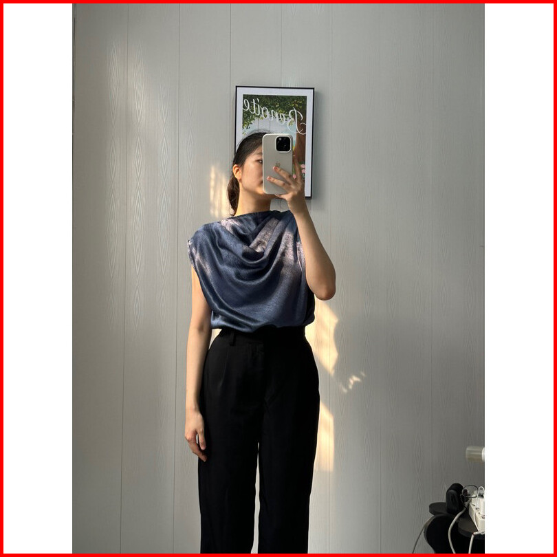 Mingee Silk Korean Sleeveless Blouse Atasan Silk Satin Korean Cantik Atasan Wanita Baju