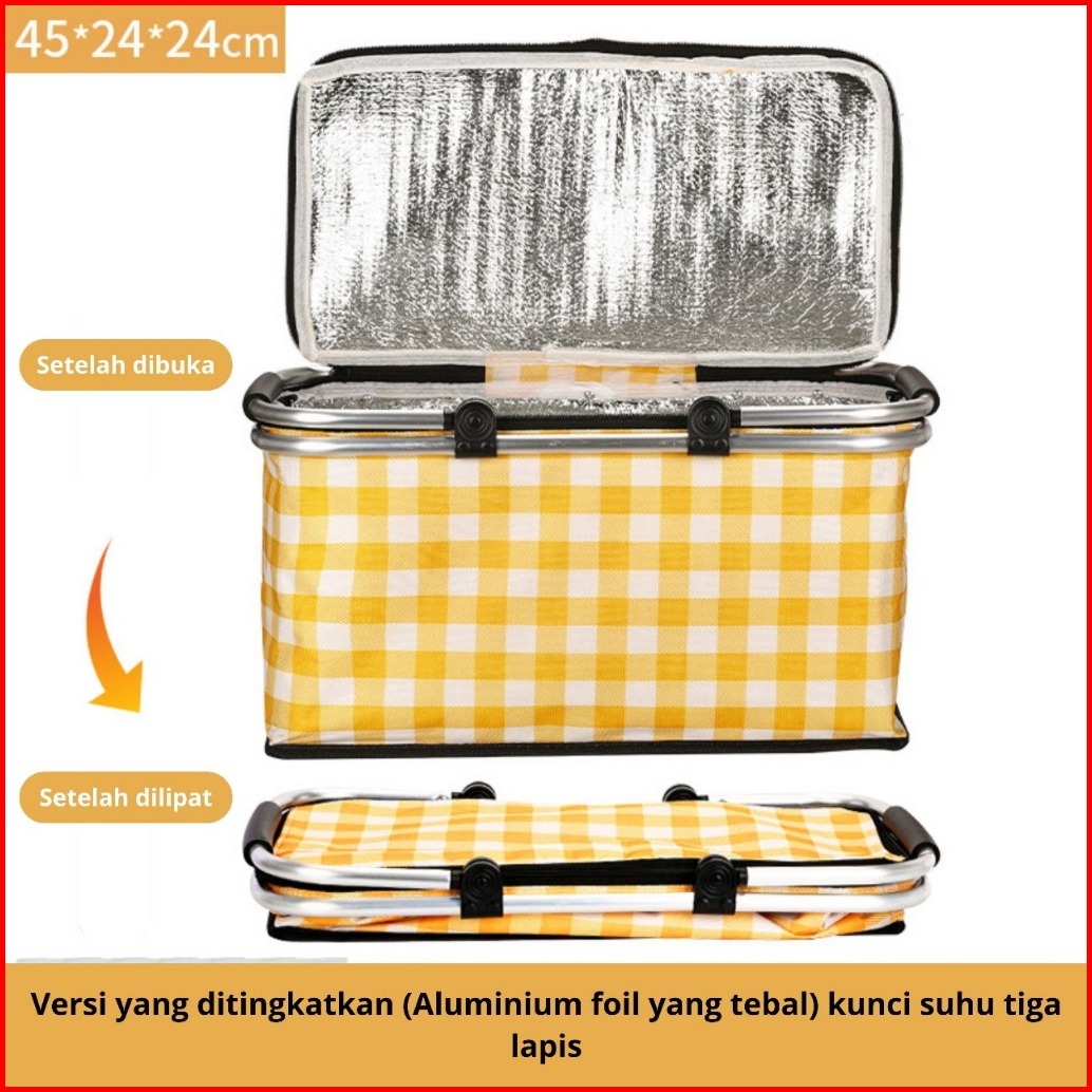 Keranjang Piknik Lipat Portable Dengan Aluminium Foil Tulang Aluminium