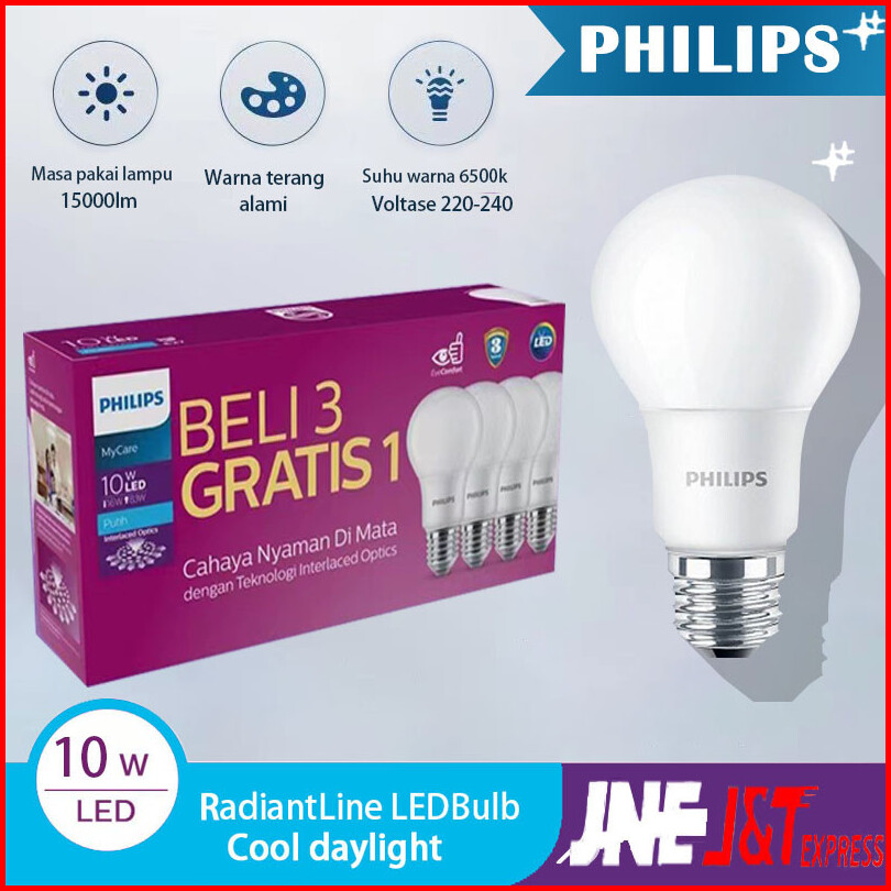 Beli 3 Gratis 1lampu Led Philips 14.5w 12w 6500k Putihcahaya Nyaman E27 Low Loss Rumah Led Bulb