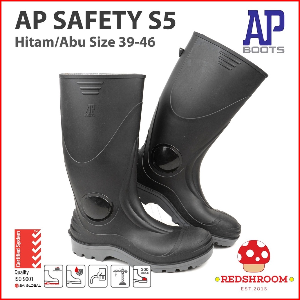Sepatu Boot Safety Tinggi Safety S5-ap Boots Hitam Besi Toe Cap Anti Slip Karet Lokal Proyek Size 44-46