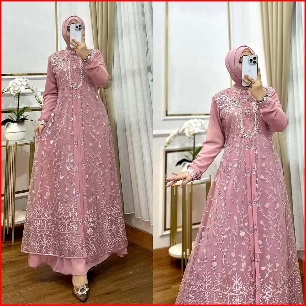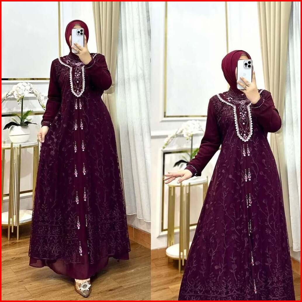 Lyf Dress Kebaya Burgandy Baju Gamis Terbaru 2025 Dress Wanita Kekinian Gamis Pesta Mewah Elegan Plus Renda