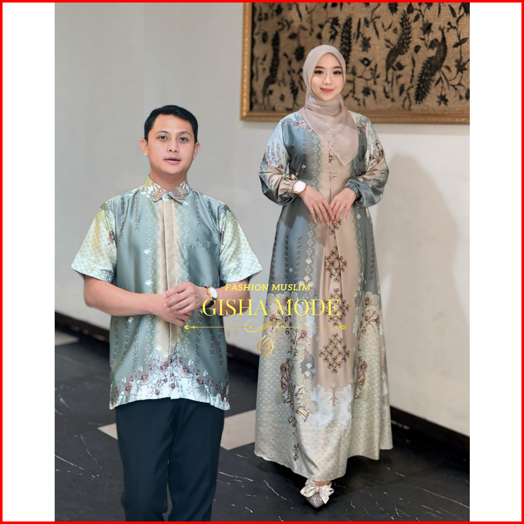 Couple Pasangan Gamis Medinna Silk Premium Gamis Motif Bunga Mewah Bestseller Couple Kemeja Dan Gamis Lebaran