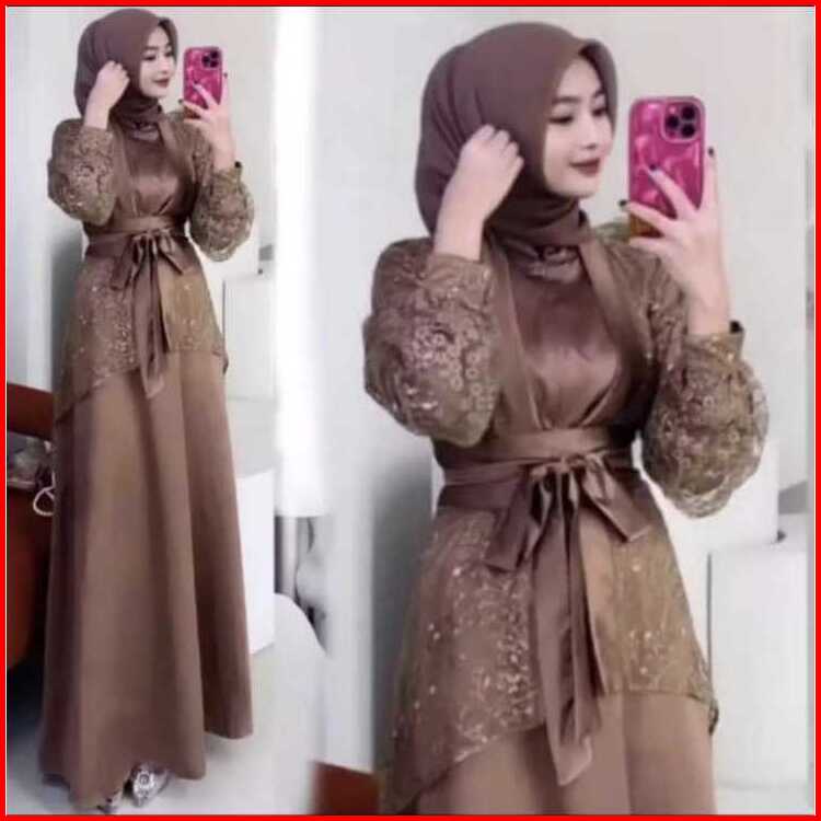 Veloxa Dress Gamis Outer Terbaru Gamis Velvet Mix Brukat Gamis Warna Mahagony Gamis Pesta Mewah