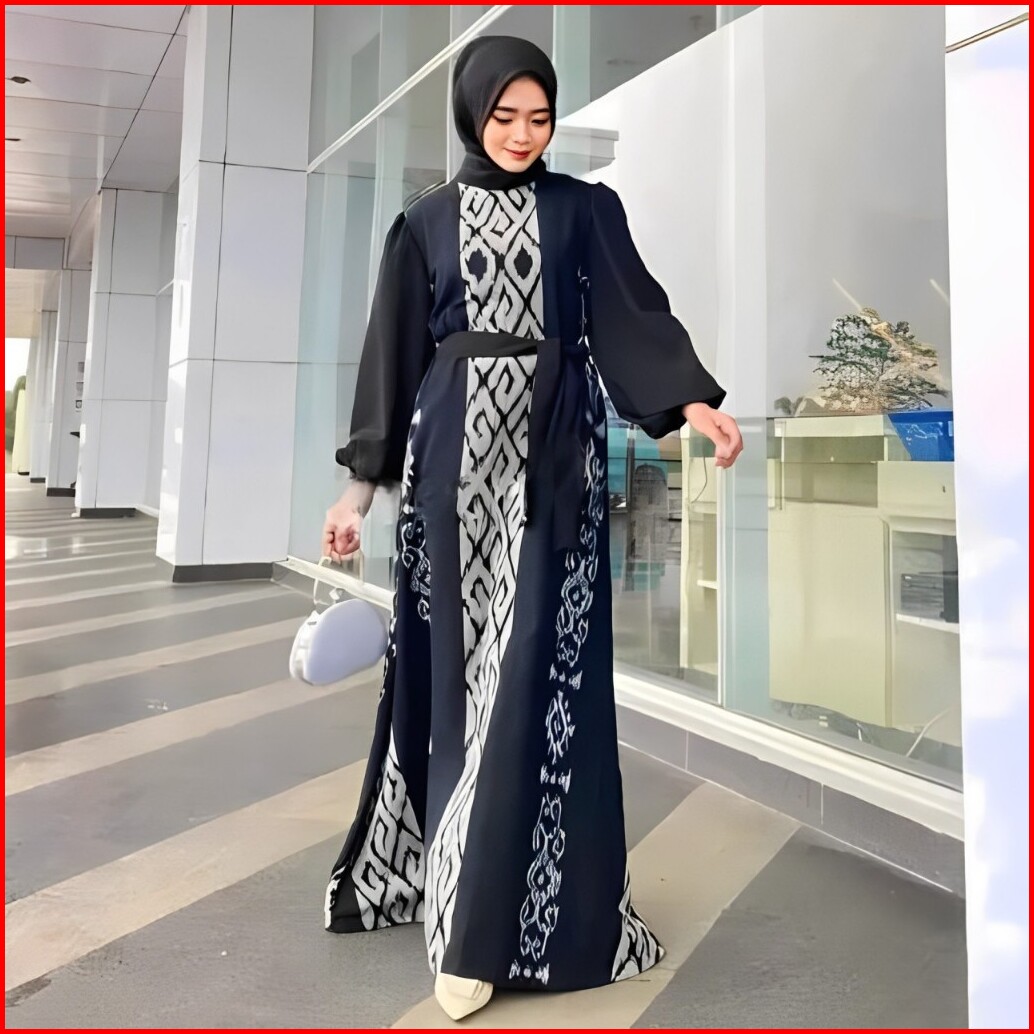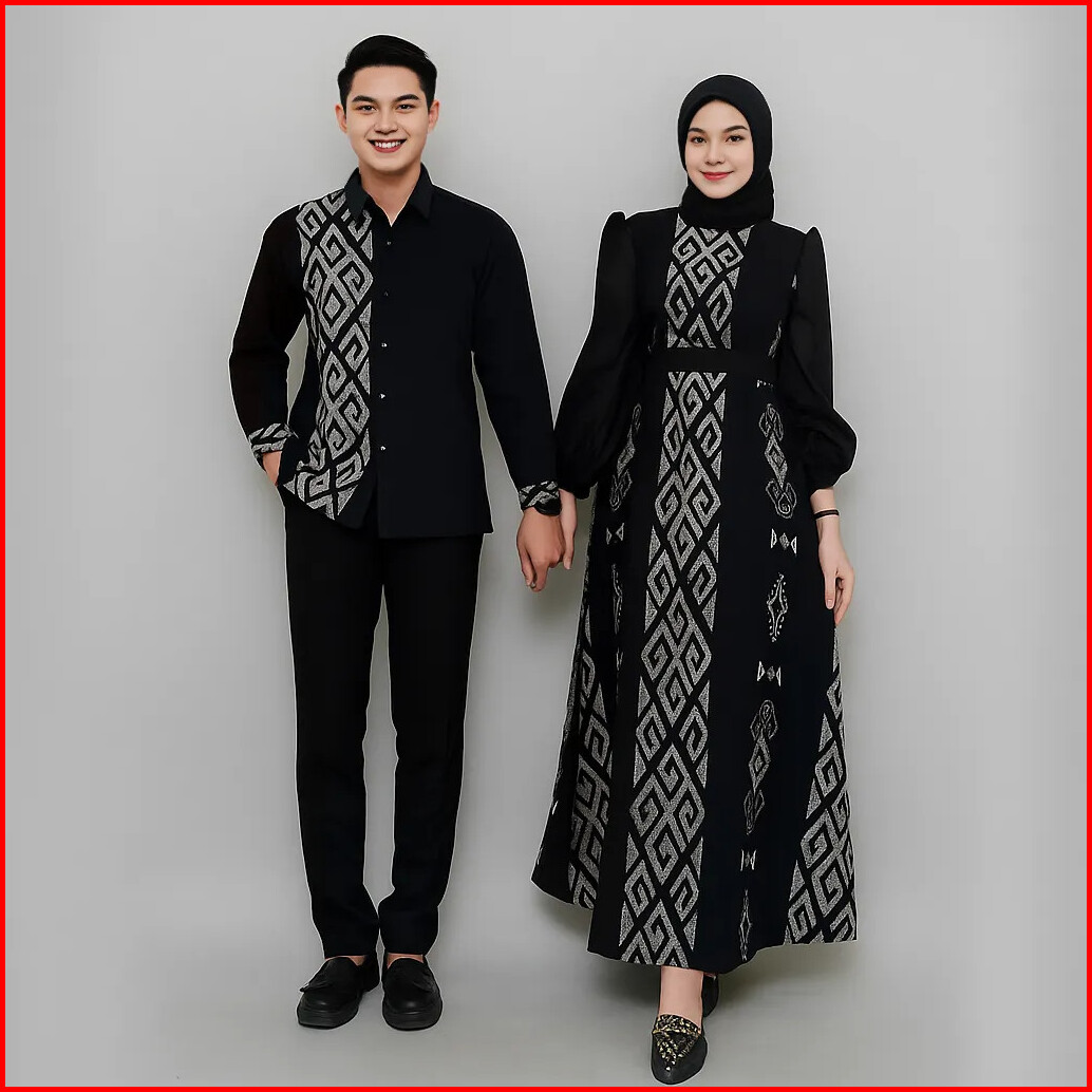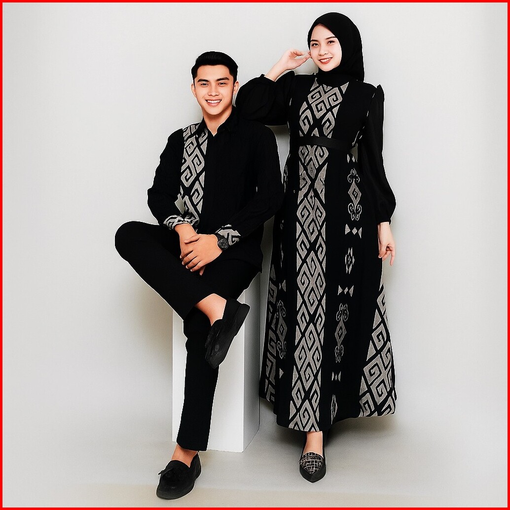 Baju Tenun Couple Black New Clarisa Setelan Kondangan Pria Wanita Gamis Lebaran Terbaru Modern