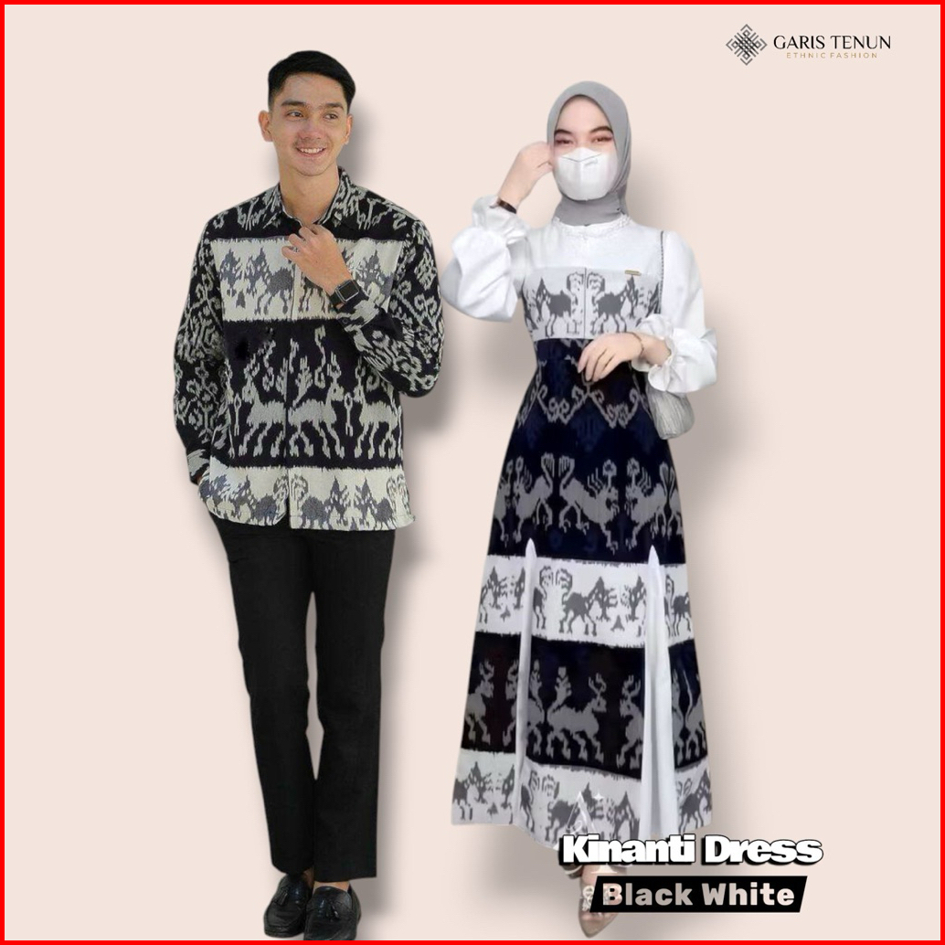Gamis Dress Etnik Tenun Premium Remaja Wanita Warna Putih Navy Gamis Tenun Etnik Kombinasi