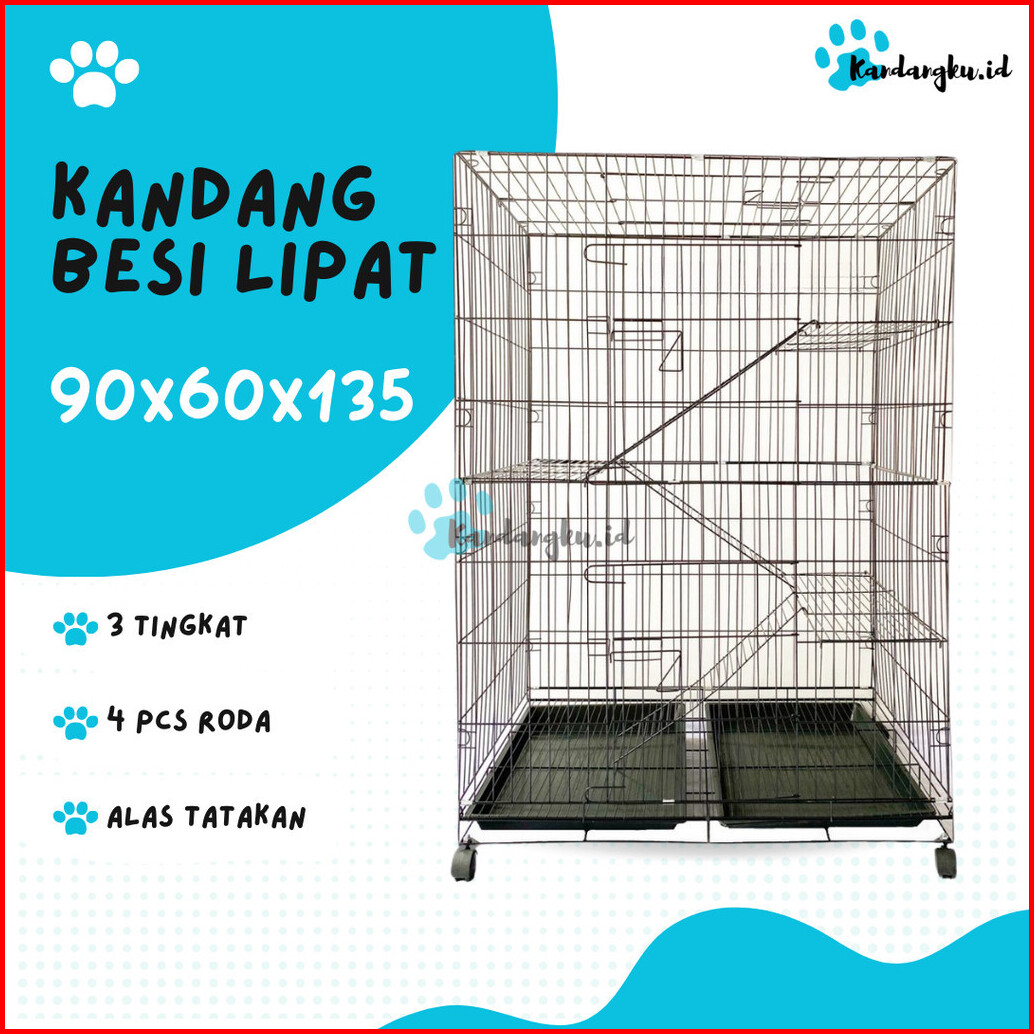 Kandang Besi Lipat Ukuran 135x90x60 Roda Kandang Extra Jumbo Kandang Kucing Kelinci Anjing - Kandangku.id