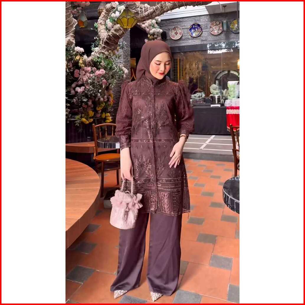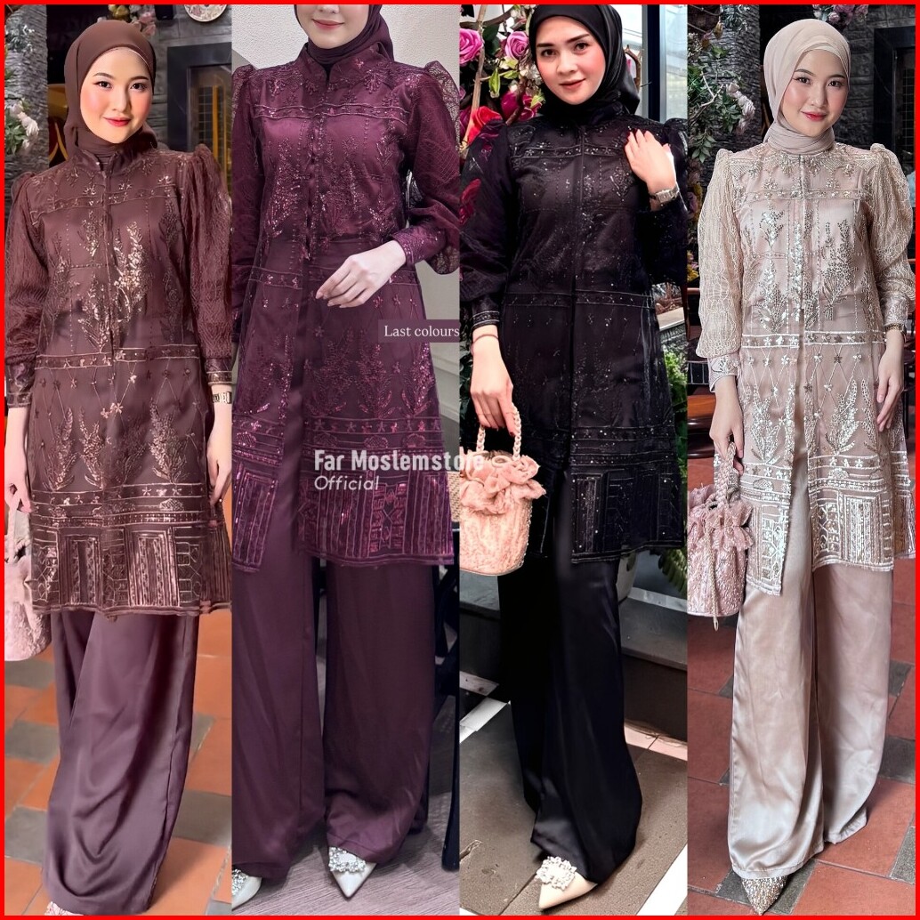 Sakura Set 3in1 Outer Brukat Premium Setelan Wanita Tunik Brokat Kondangan Oneset Far Moslemstore