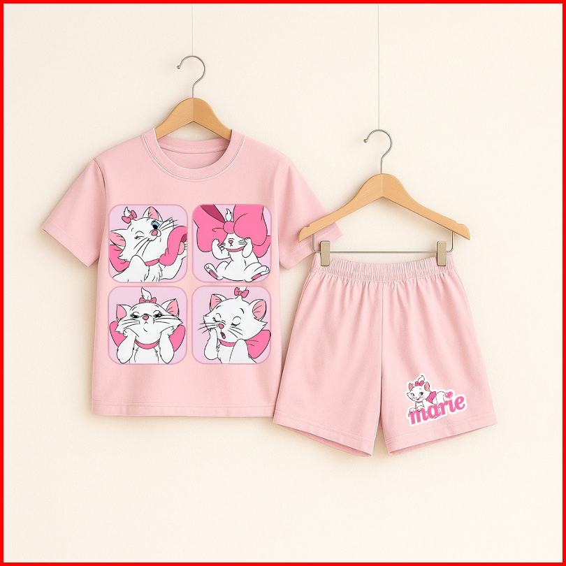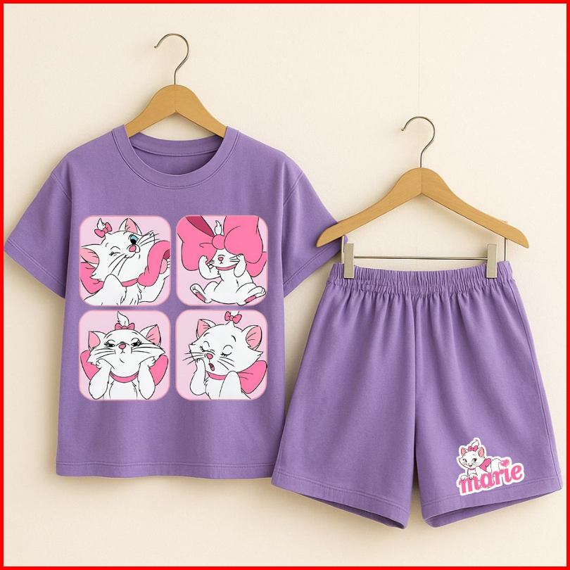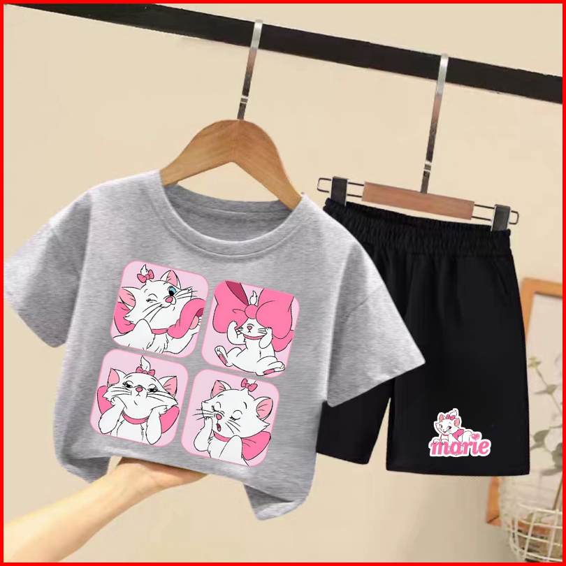 Dealshop Setelan Baju Dan Celana Pendek Anak Perempuan Laki Laki Usia 2 Sampai 11 Tahun Motif Marie Cat Bahan Kaos Marie